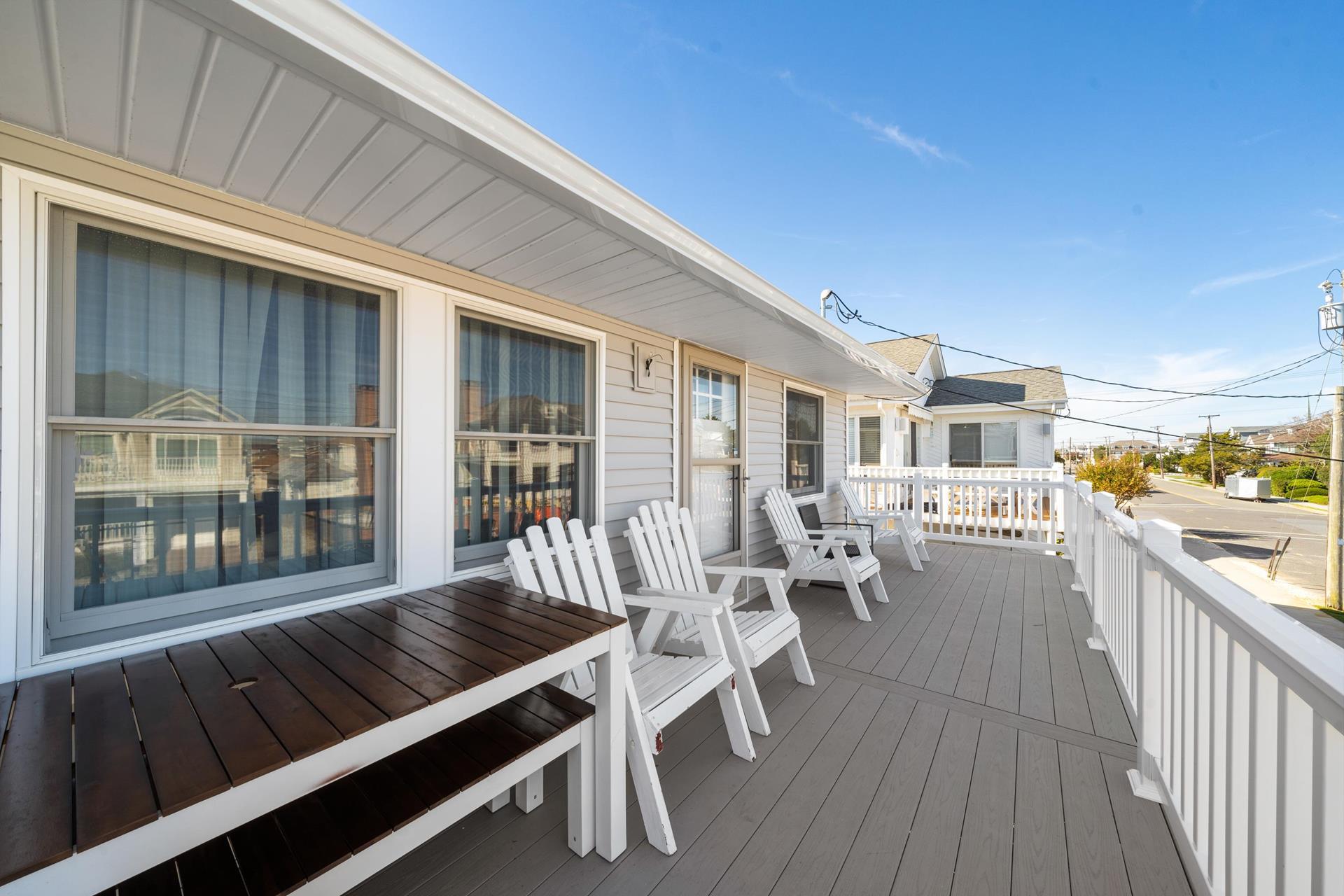 Second floor of a duplex in the beachblock. Seasonal tenants pay utilities, excess water & sewer + 4X MUA fees. Season: 5/22 to 9/8/26; 1st half season: 5/23 to 7/11/26